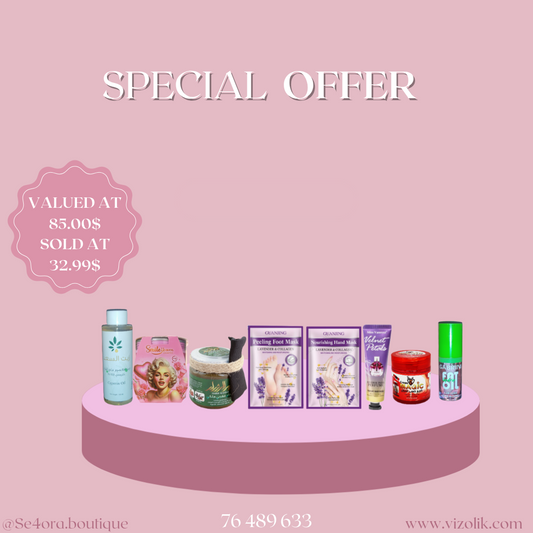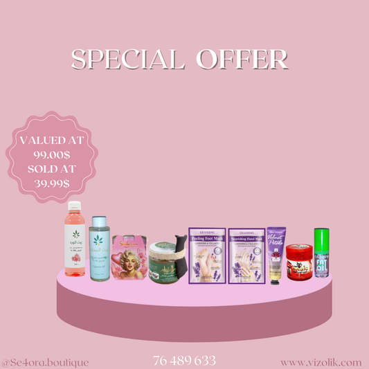 Saad Oil Hair Removal 100ml زيت السعد Natural 100% + Bikini 👙 Butter + Moroccan Scrub & Loofa + Foot & Hand Mask + Free Magic Foot & Hand Cream + Lip Balm ( Random ) ©